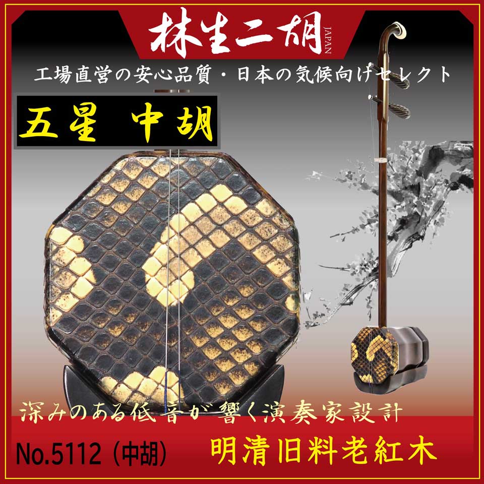 この蛇皮、「五星 明清旧料老紅木 二胡」のものです。超五星ではないですよ。