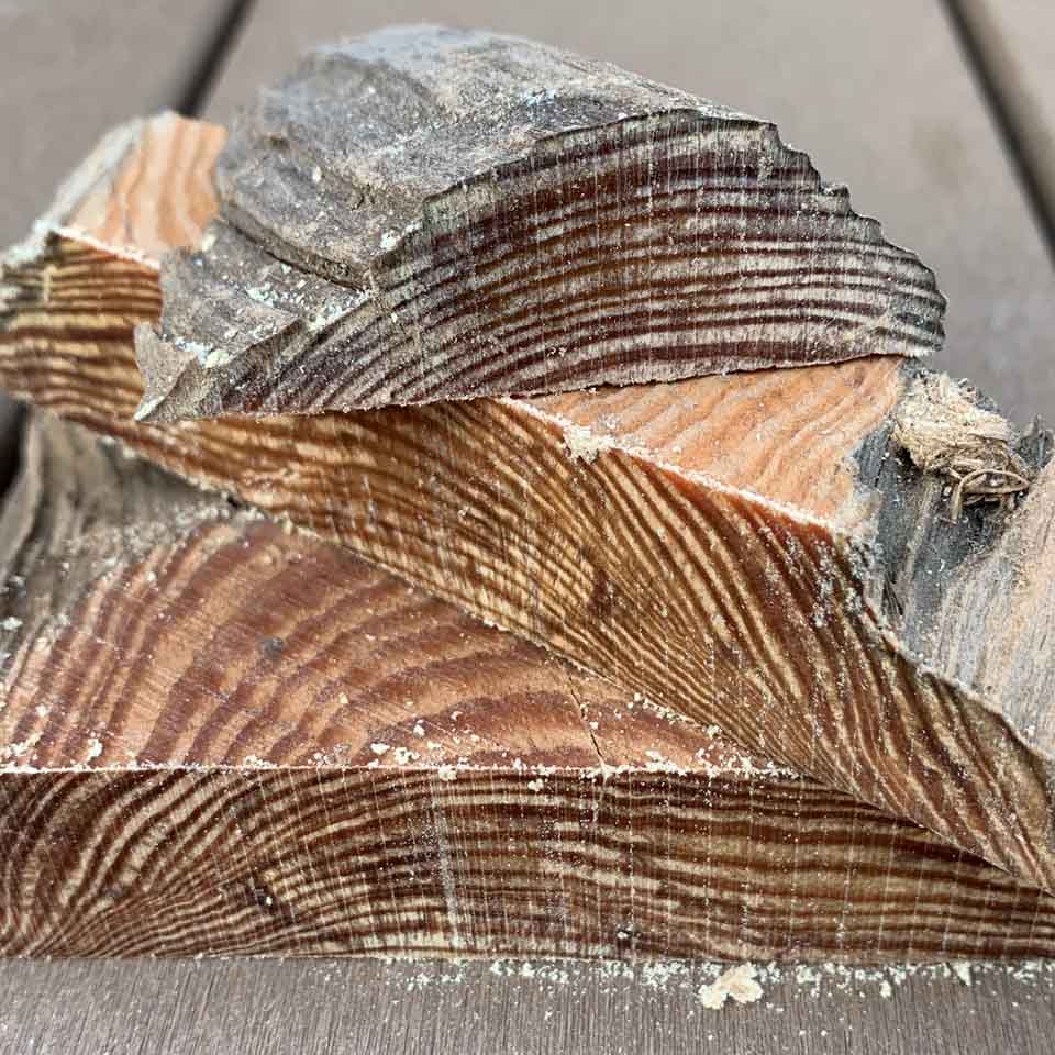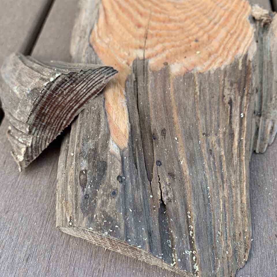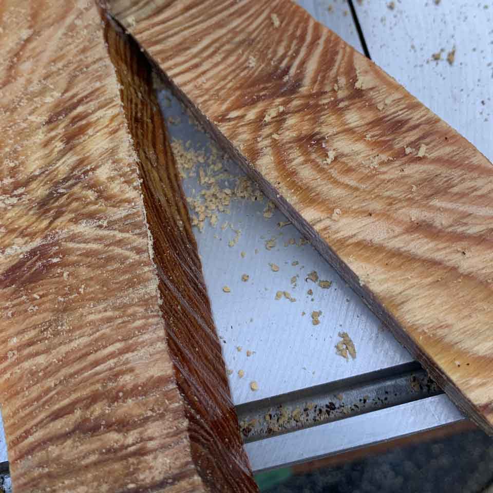 見た目はベタベタそうですが、長年に亘り寝かせてあった古材なので、松脂が結晶化しているため触れてもサラっサラです。