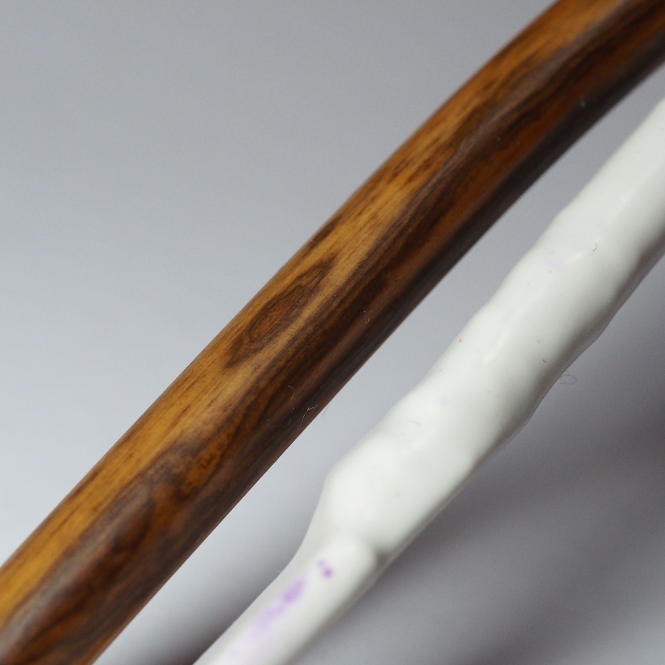 こちらは、長崎にてお手に取っていただいた弓になります。歪把弓は、二胡演奏家、音楽教育家であった蒋風之先生が1970年代にご自身で手作りした弓。蒋風之先生がこれを用いて演奏した「漢宮秋月」は、天下に知れわたったとされます。画像をみてください。弓が変な方向に歪んでいますね。とても貴重な資料です。