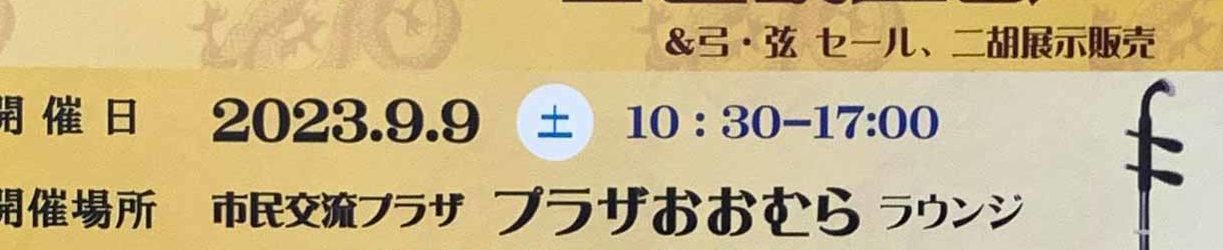 【2023.9.9(土)】大村 二胡メンテナンス&音色調整会 予約受付中!