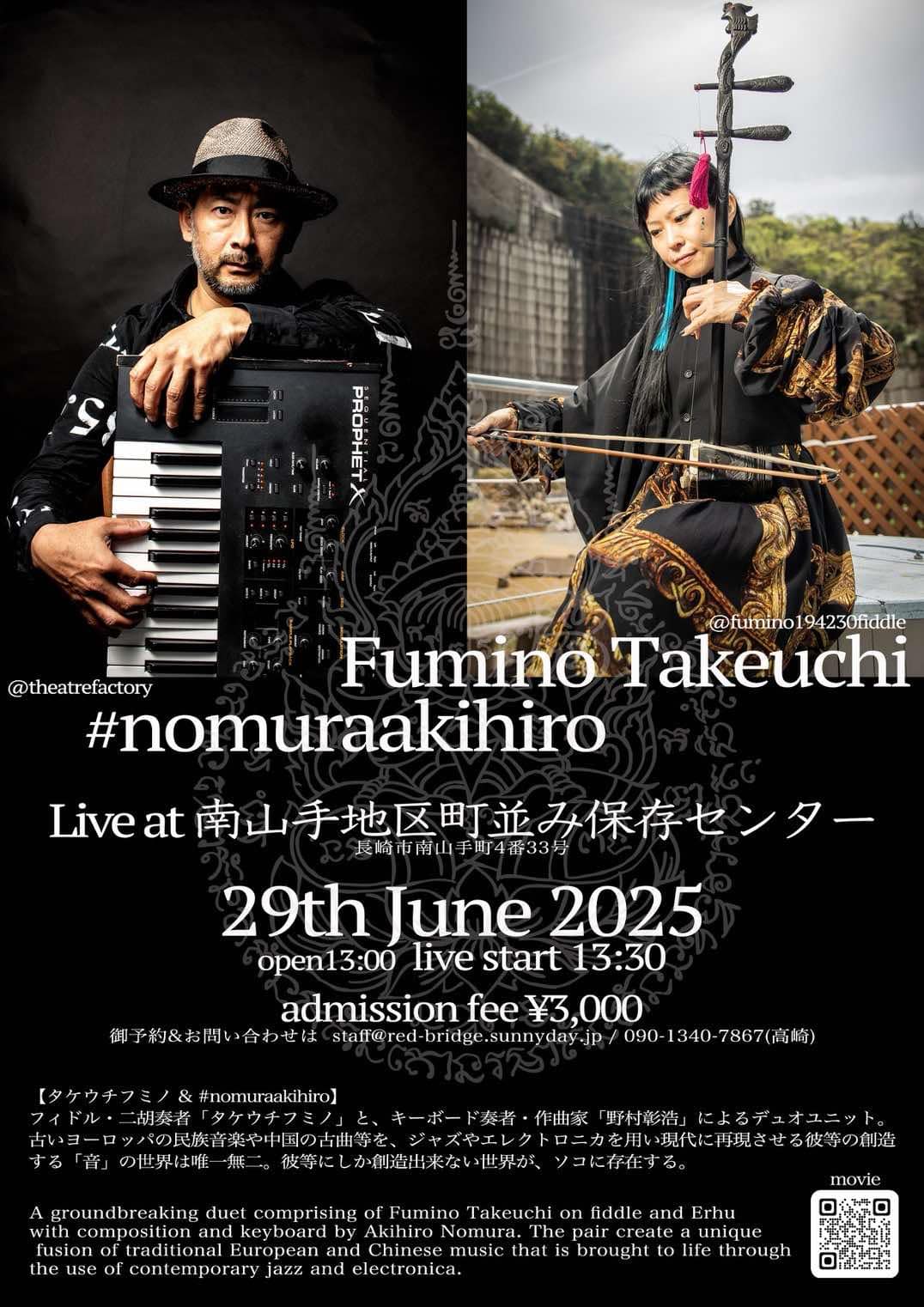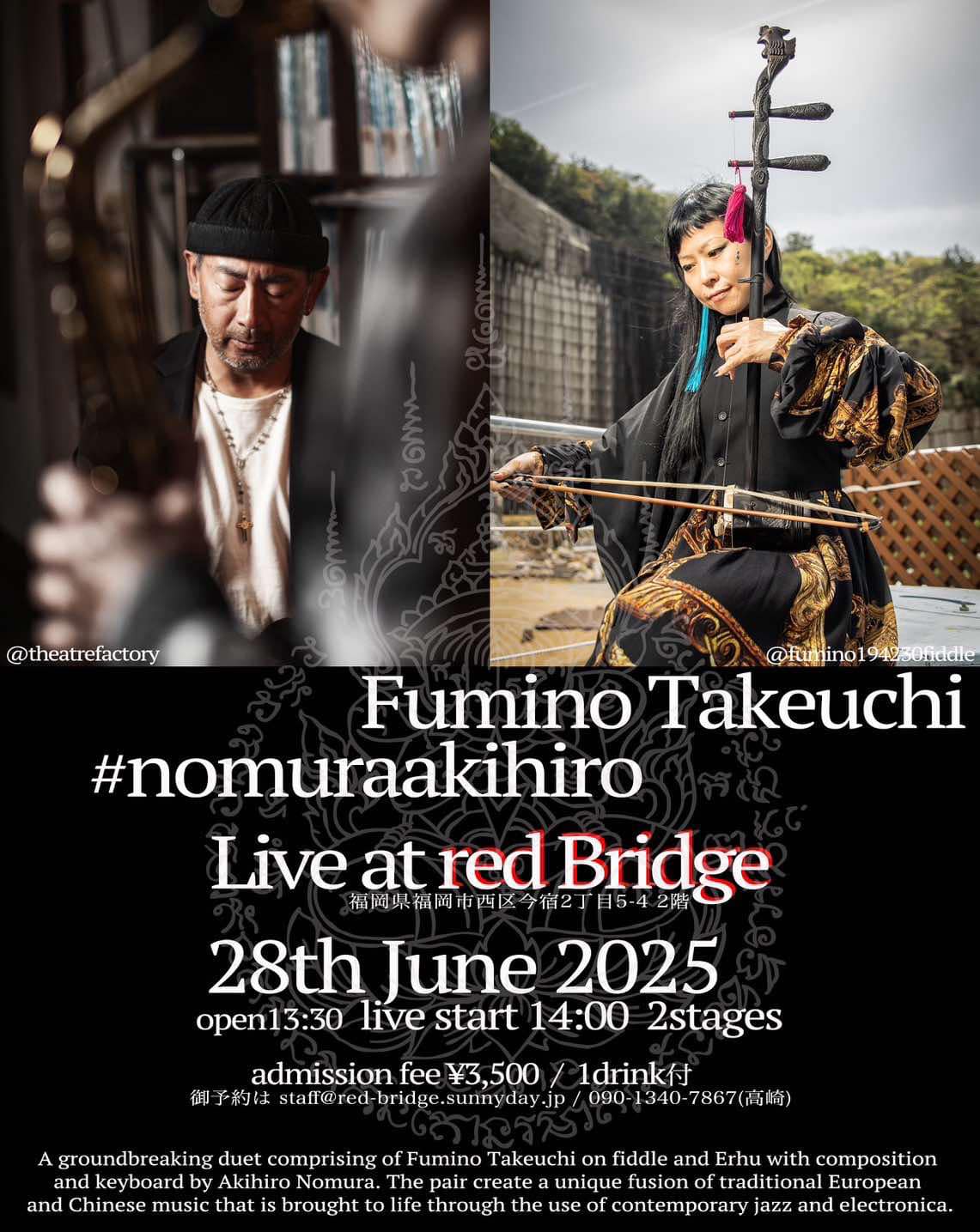 【ライブ開催】2025.6.28-29「タケウチフミノ&野村彰浩」二胡ライブ