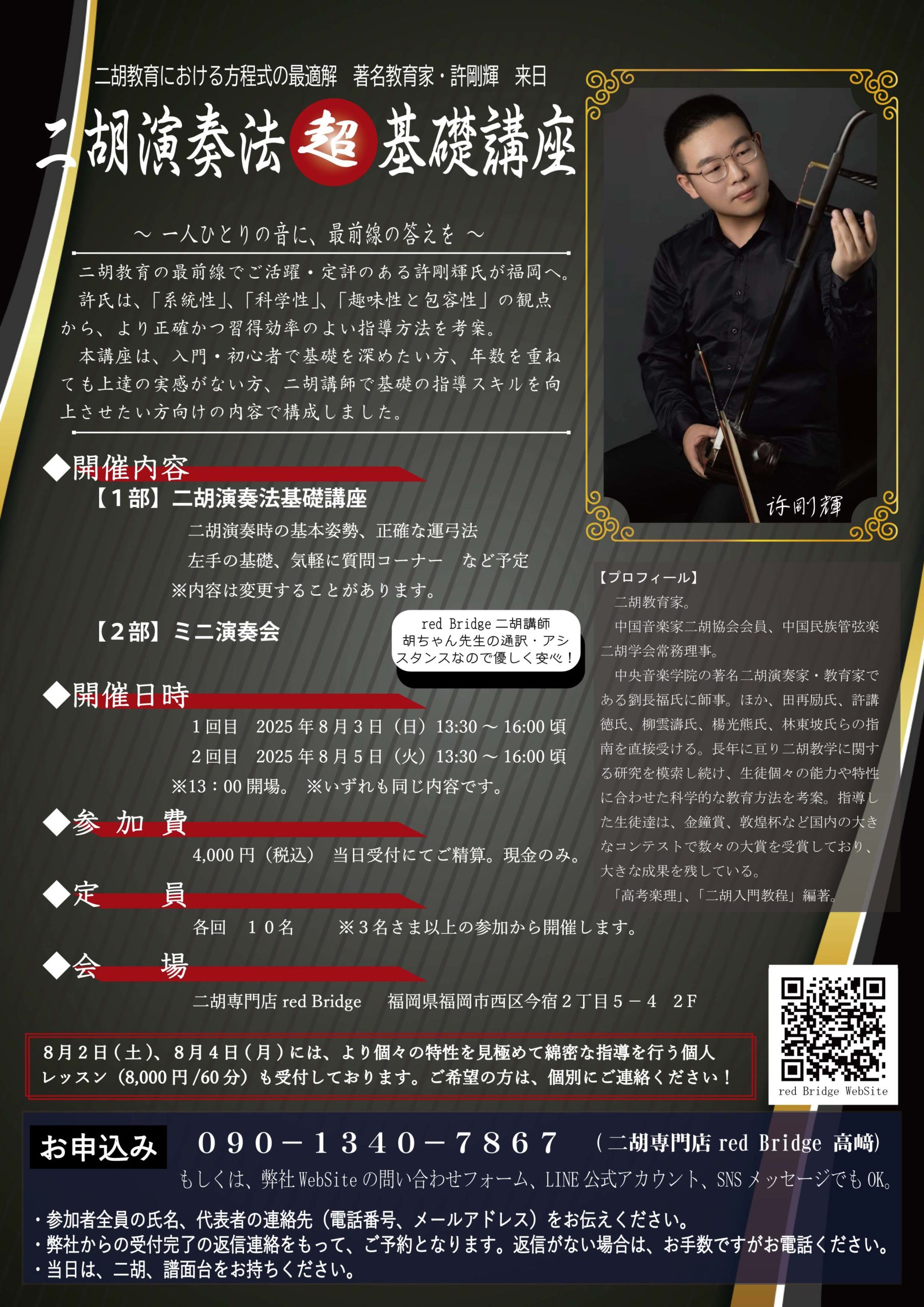 二胡教育の最前線でご活躍・定評のある許剛輝氏が来日決定!福岡へ。
