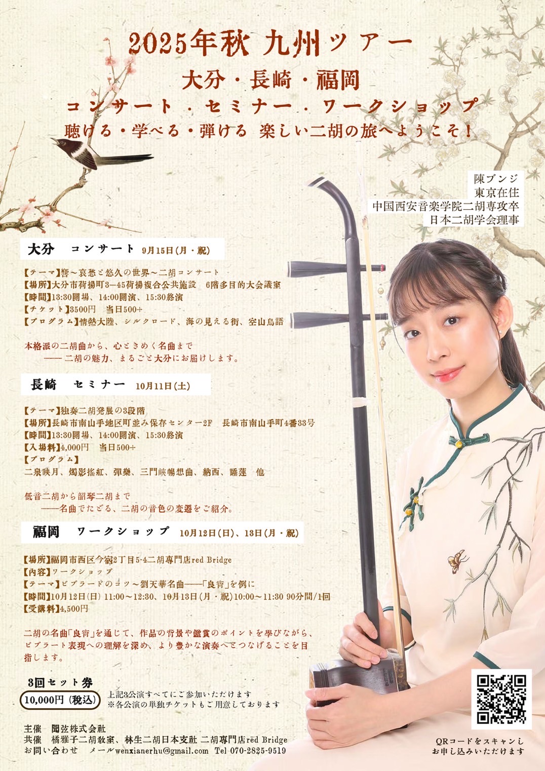 ◆長崎会場では、低音二胡や無千斤二胡など(予定)多様な楽器で奏で、曲を学べる「セミナー」、