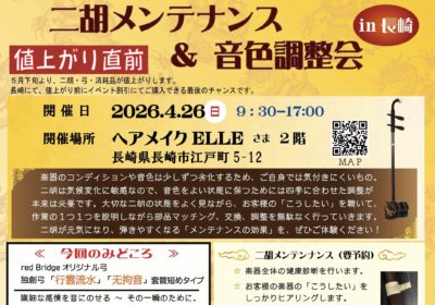 二胡メンテ&音色調整会 ご予約受付中【2026.4.26】長崎出張店舗